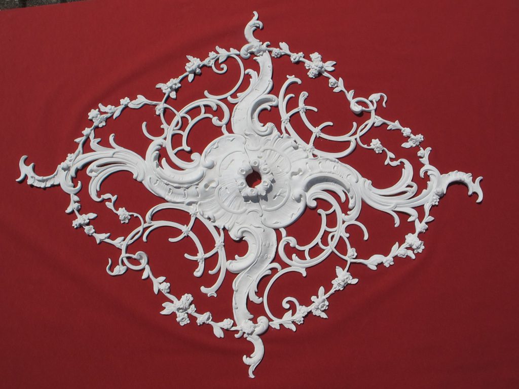 Rekonstruktion einer seltenen, sehr feingliedrigen Stuckrosette im Neo-Barock (zweiteilig) aus einem Abrisshaus.